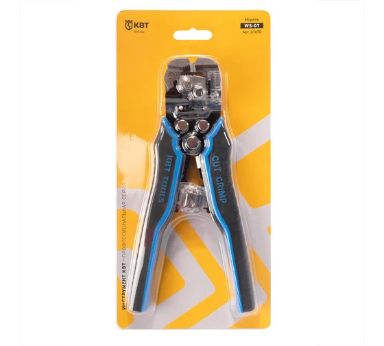 Инструмент для снятия изоляции КВТ WS-07 61670 - это новая усовершенствованная модель автоматического многофункционального стриппера, который оснащен винтом микронастройки. Инструмент сочетает в себе три полезные функции: снятие изоляции с проводов 0.05–6.0 мм2, резку проводов сечением до 6.0 мм2 и опрессовку наконечников 0.5–6.0 мм2. Изделие имеет металлическую рамку корпуса, которая обладает высоким уровнем прочности и значительно увеличивает рабочий ресурс ручного приспособления.